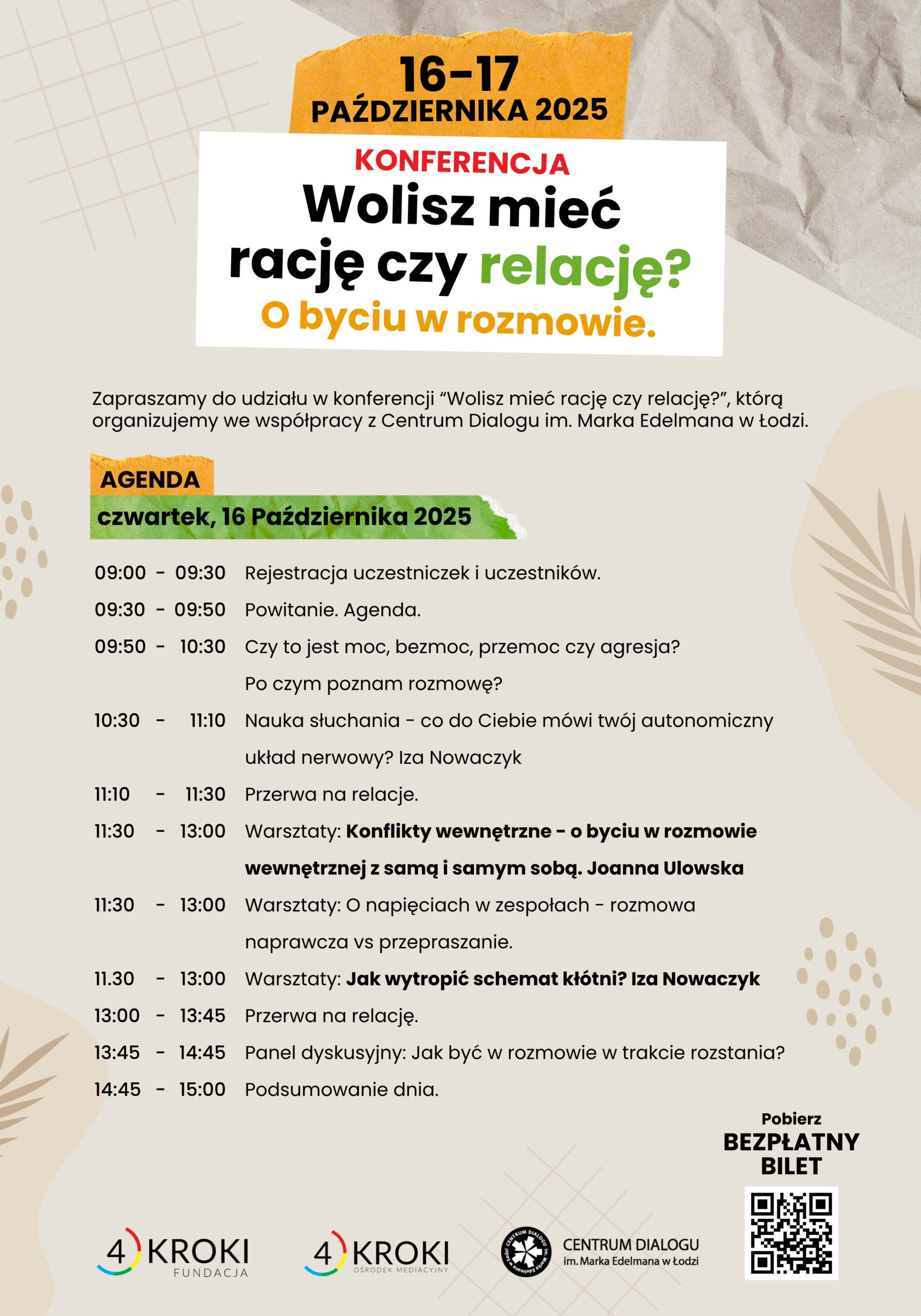 Konferencja „Wolisz mieć rację czy relację? ” 16 – 17.10.2025